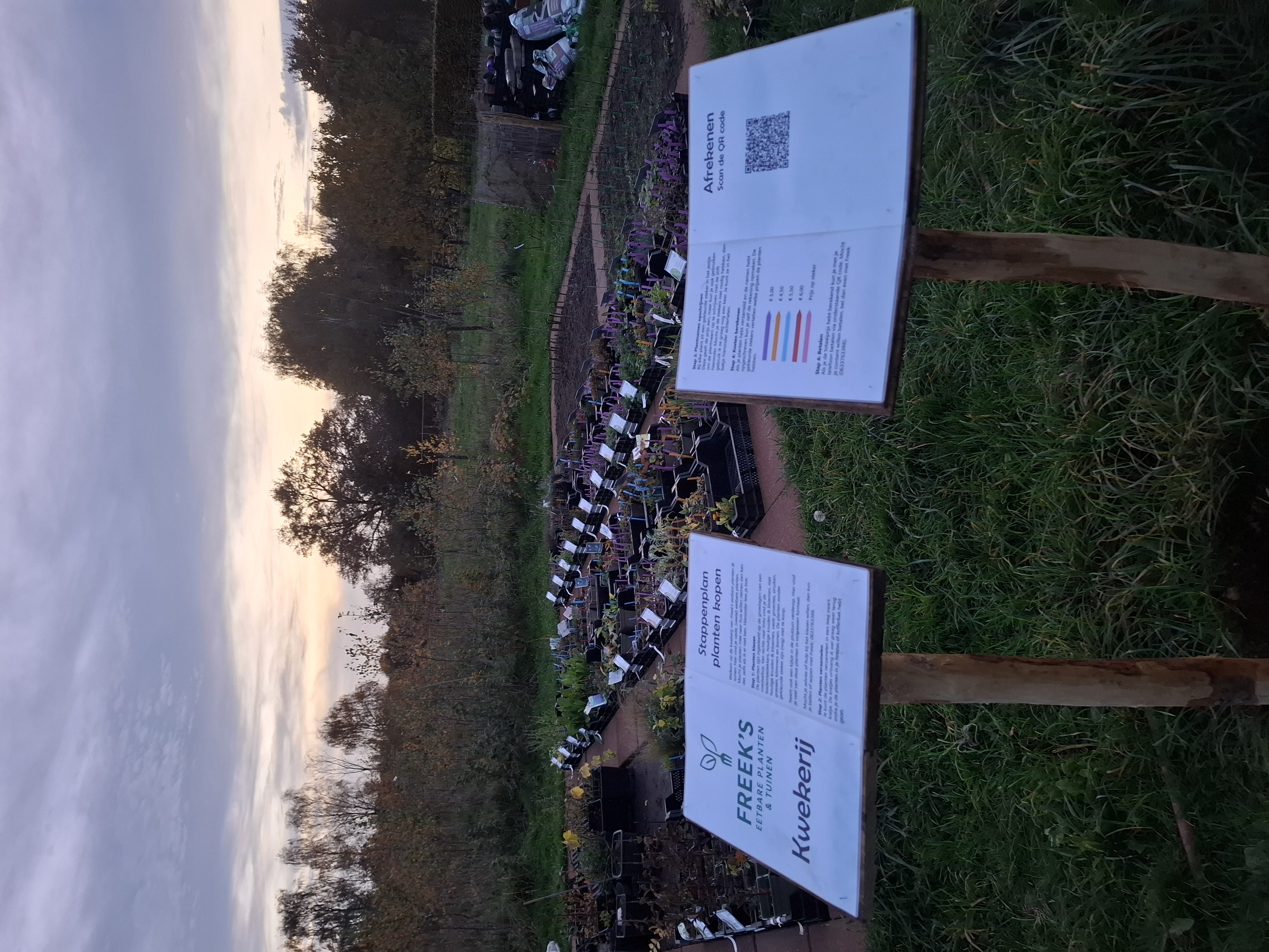 Op kleine schaal kweek ik plantgoed op voor de eetbare siertuinen en voedselbossen die ik ontwerp. Een deel van de planten verkoop ik aan mensen die zelf eetbare planten in hun tuin willen. De kwekerij is te bezoeken tussen zonsopkomst en zonsondergang en bevindt zich in het voedselbos van Klein Groenrijk. Planten mag je zelf uitzoeken en afrekenen door middel van de QR-code ter plekke.